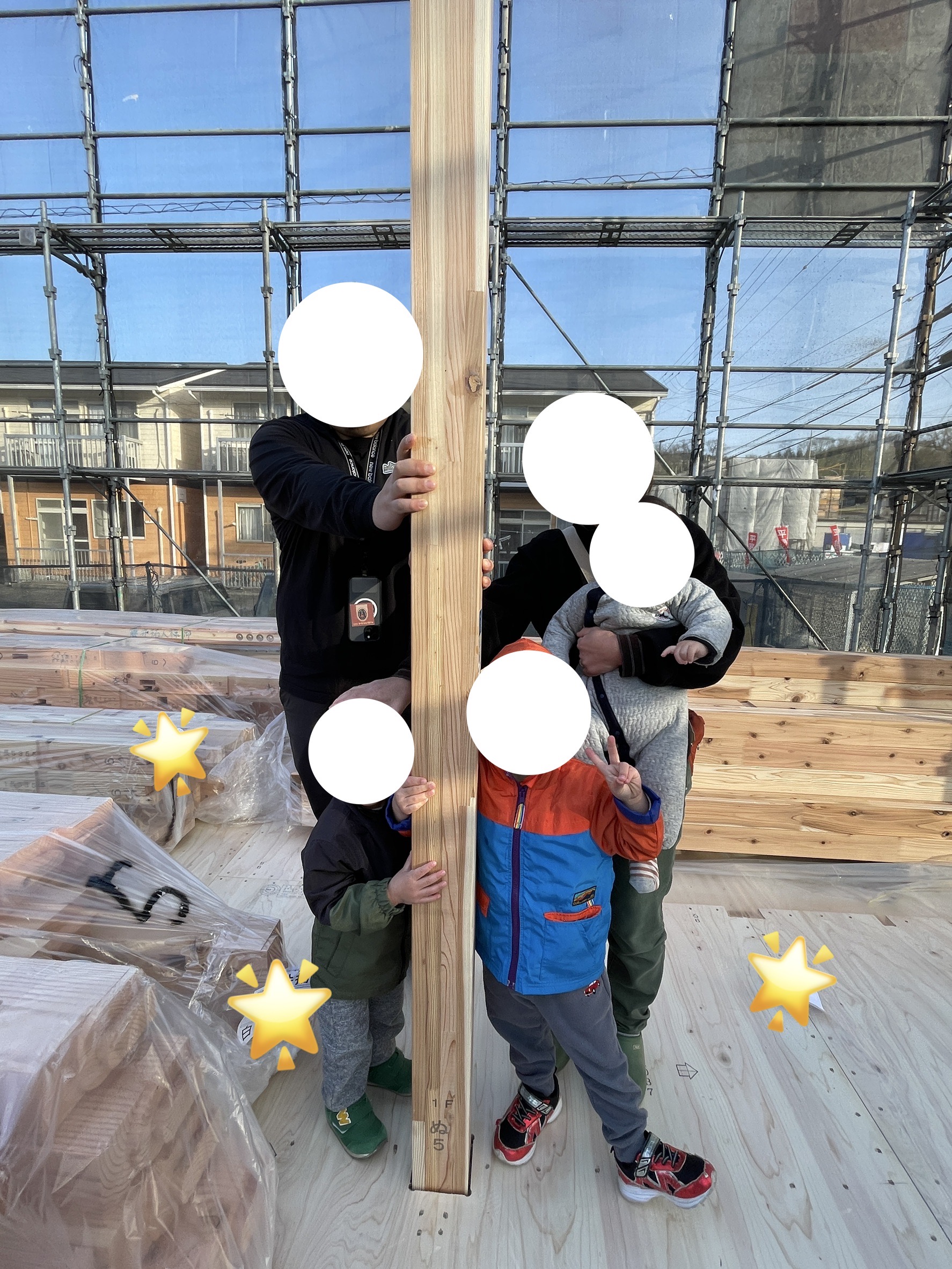 ご家族で記念の柱建てを行います。